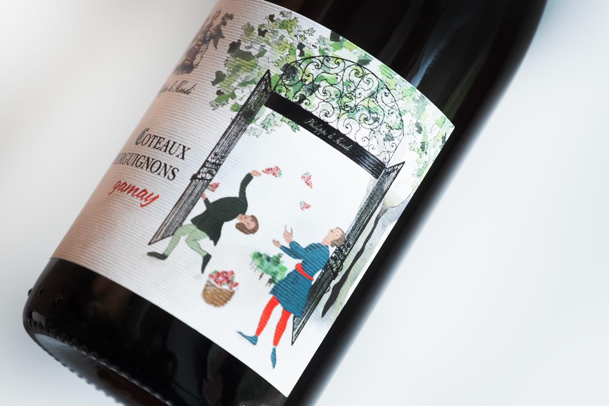 The Duke of Burgundy, Philip the Bold, is famous for his Ordinance which banned the “vile Gamay grape” from Burgundy wines. Taking the opposite historical stance—fortunately—our client asked us to create the packaging for a refreshing wine from the Côteaux Bourguignons appellation, made from this now noble Gamay grape variety that is currently enjoying a revival and is full of flavor!