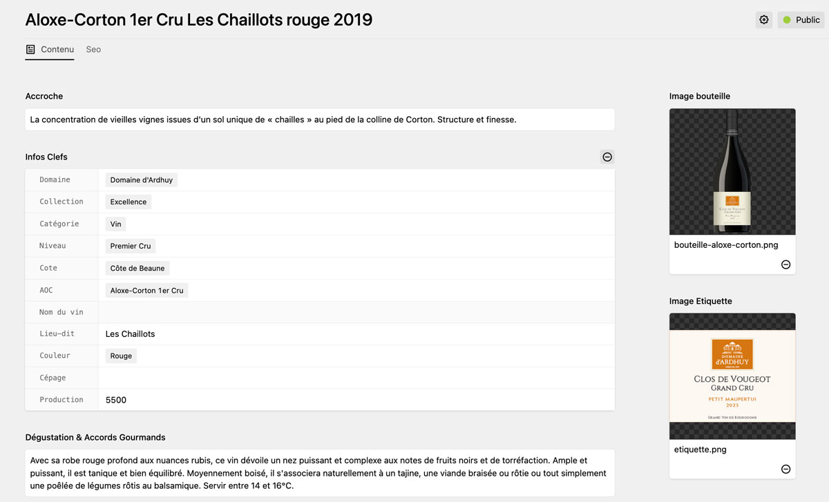 We implemented our WineData data management solution to enable Domaine d’Ardhuy to manage all its product data in a simple, structured way, and share it with its customers via an easy-to-access interface. An incomparable time-saver on a daily basis.