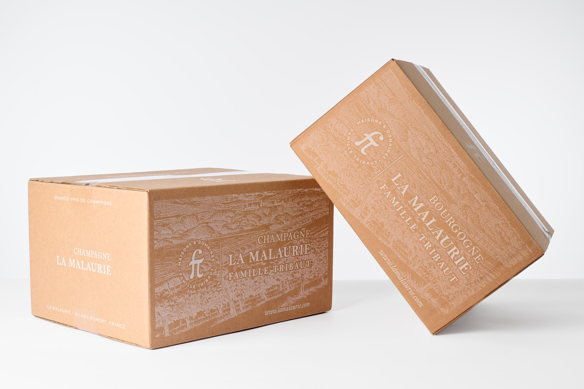 Nous avons défini pour La Malaurie l’intégralié de son univers visuel : bloc marque et création d’un monogramme ainsi que l’ensemble des habillages des vins de Bourgogne et des Champagnes (étiquette, coiffe, collerette, carton, etc)